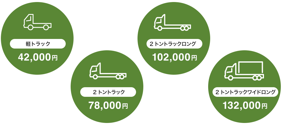 | トラック | トラック2車 | トラックロング2車 | トラックワイドロング3車+軽トラ |